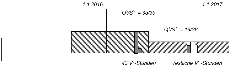 - Höchstanzahl restlicher bezahlter V1-Stunden = (J x S1/6) – (V3-Stunden x S1/S3) [(6 x 38/6) – (36 x 38/36)] = 0 St.