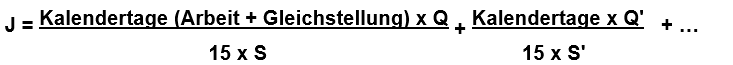 Q/S = gegenwärtige Beschäftigungsbruchzahl im Urlaubsjahr, einschl. bezahlter Ausgleichsruhe