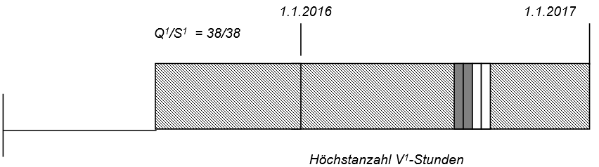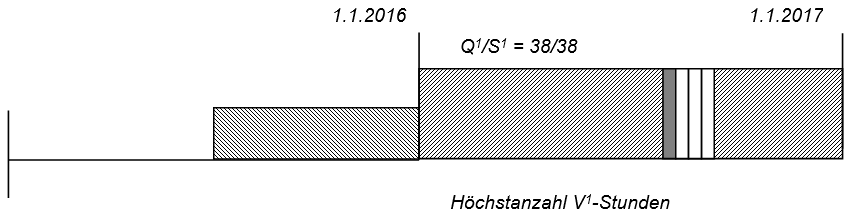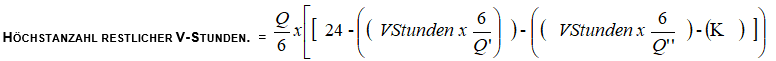 - Höchstanzahl V-Stunden = Q1/6 x [24 – (V-Stunden x 6/Q)] = 38/6 x [24 – 0] = 152 St.