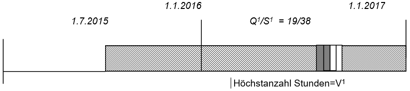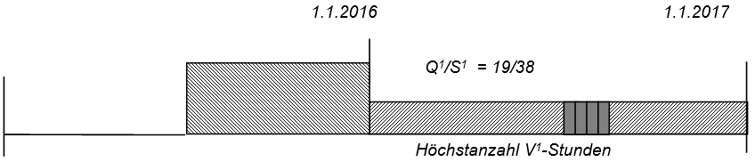 - Höchstanzahl V-Stunden = Q1/6 x [24 – (V-Stunden x 6/Q)] = 19/6 x [24 – 0] = 76 St.