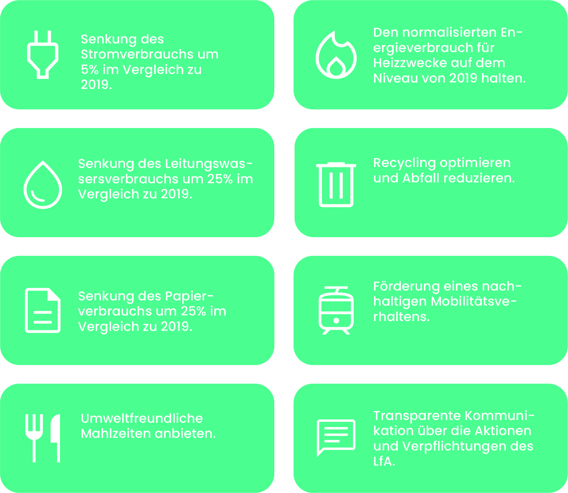 - Transparente Kommunikation über die Aktionen und Verpflichtungen des LfA.